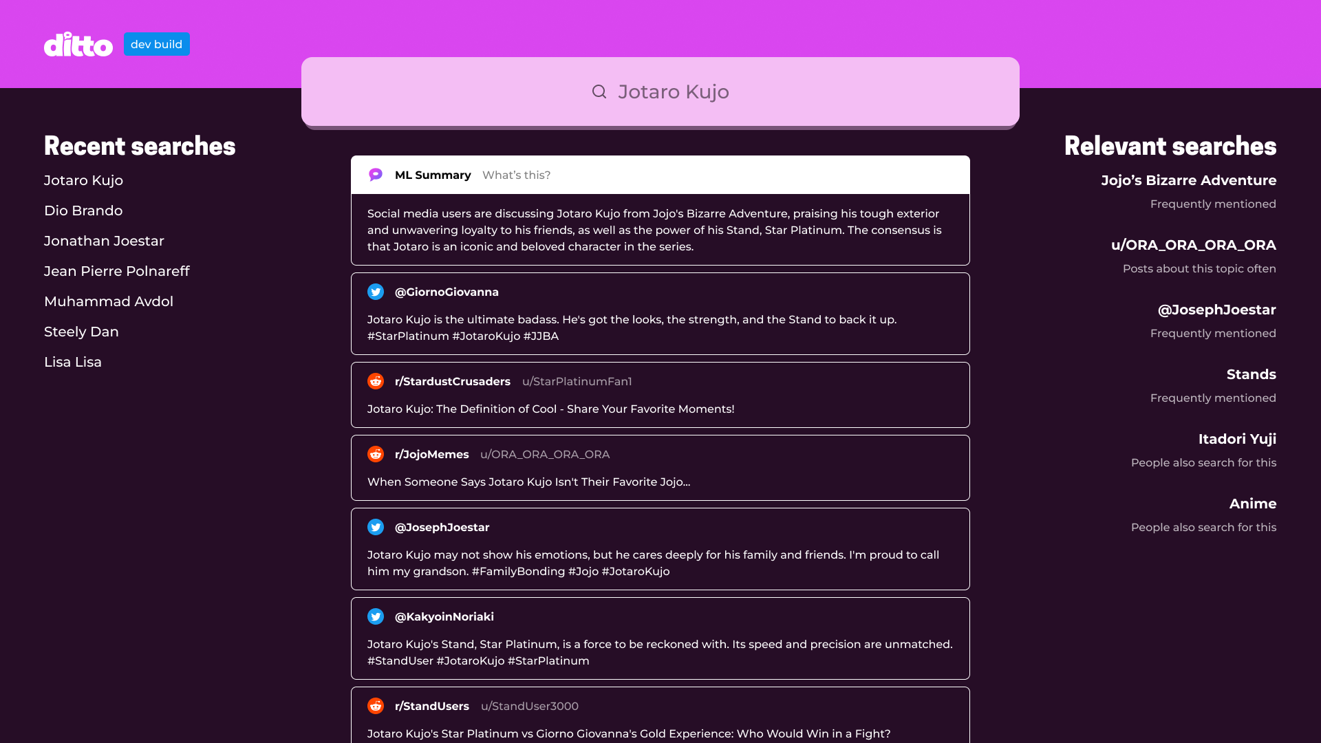 Ditto was my first try at entrepreneurship after I graduated from university. A cofounder and I constructed a new search engine that harnessed the power of large language models and web scraping to provide a more complete picture of what’s going on on the web.