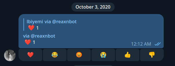 I’ve been using Telegram since 2015. And in 2020, it still didn’t have emoji reactions for messages, so I made a Telegram bot to address the problem.
